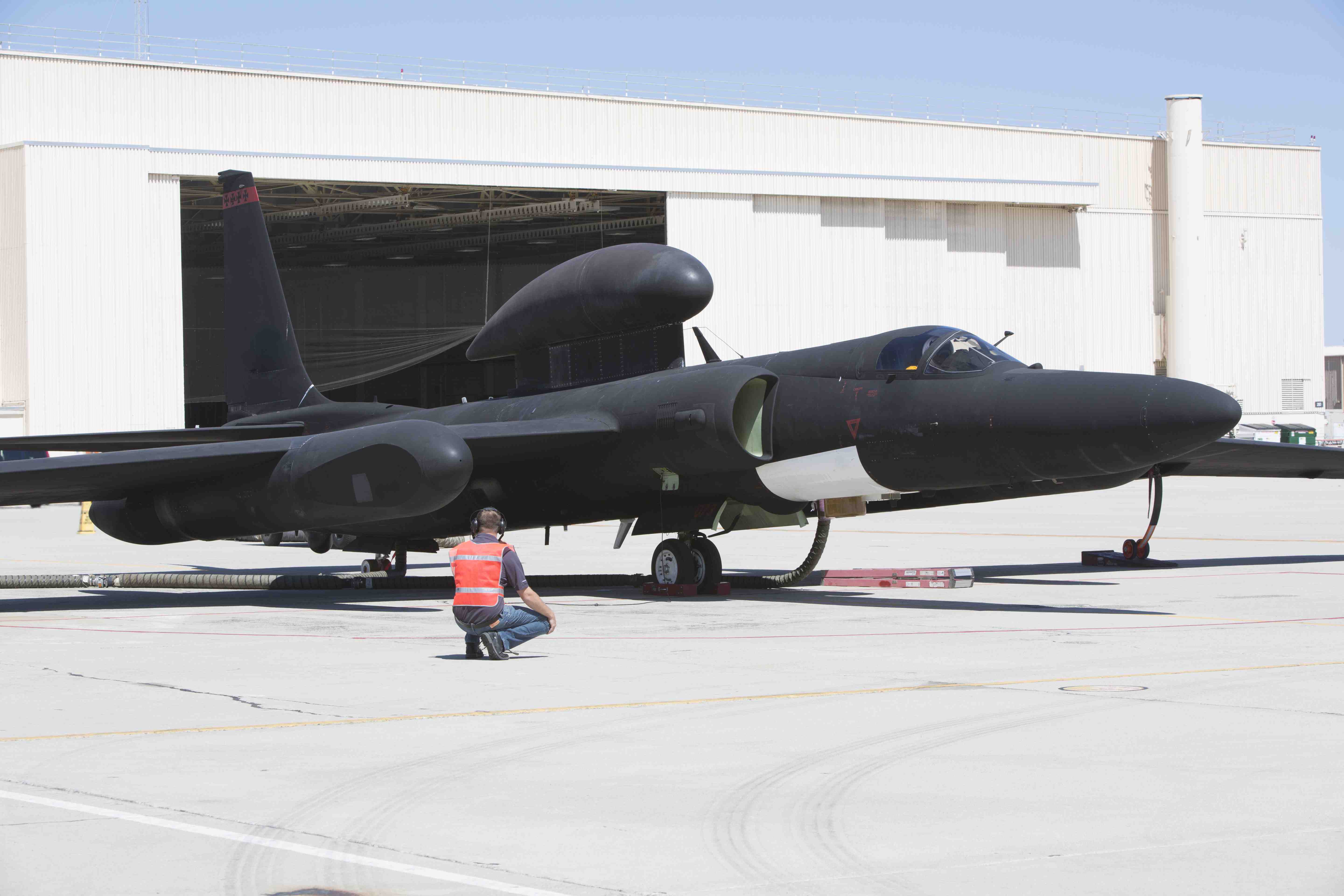 In this case, however, the security goons had not actually made the good folks at Palmdale Site 2 remove any markings. They had requested that the image be altered in Photoshop before release. Unfortunately, they failed to notice that the ‘last three’ of a U-2’s serial number is repeated on the main landing gear door. If you zoom in on that area in the image above, you can determine that the jet’s serial number is 80-1073…