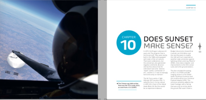The new chapter takes up where the first edition of the book ended, in 2015. It tells how the U-2 defeated plans for it to be replaced by the Global Hawk UAV. The various subsequent upgrades to the sensors, displays and navigation systems are described, along with the notable developments in networking. Operational changes are covered as well. Finally, I discuss the pros and cons of the USAF’s plan to retire the Dragon Lady in favour of satellites and the stealthy Penetrating-ISR UAV.