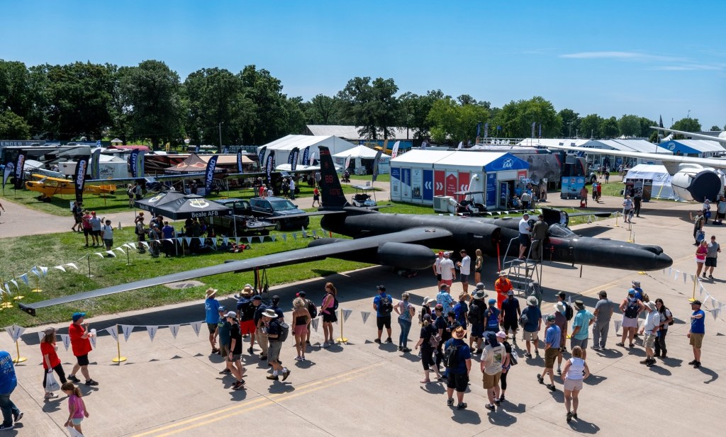 The public has already had the opportunity to join in the celebrations. There was an Open House and Airshow at Beale last month. Earlier this month, both the U-2s that are based at RAF Fairford in the UK participated in the Royal International Air Tattoo (RIAT), the world’s largest military airshow. Last week, a U-2 was present all week in the static park at Oshkosh, the huge fly-in and gathering of warbirds and sport, experimental, business and general aviation aircraft. Enjoy the photos below!