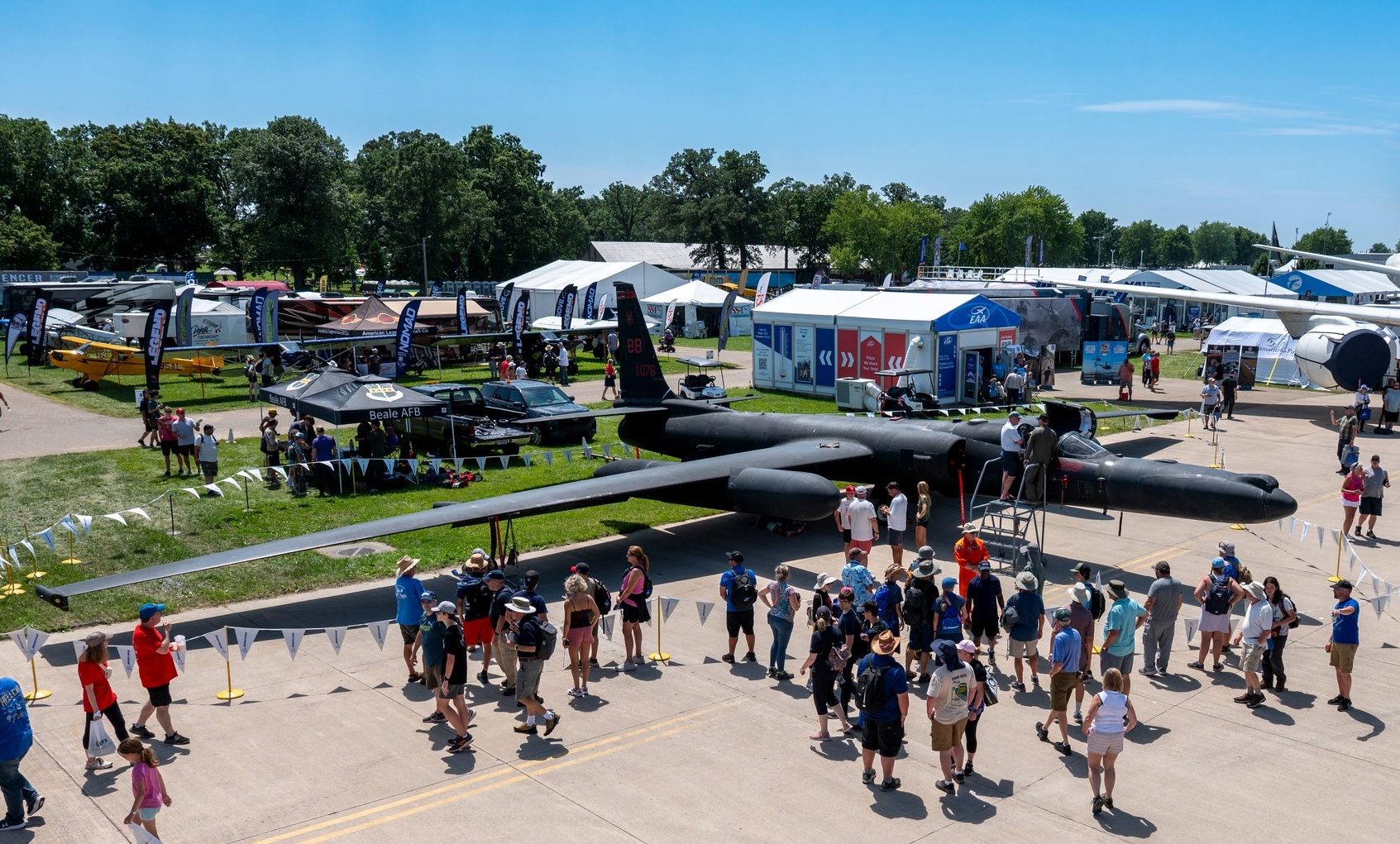 The public has already had the opportunity to join in the celebrations. There was an Open House and Airshow at Beale last month. Earlier this month, both the U-2s that are based at RAF Fairford in the UK participated in the Royal International Air Tattoo (RIAT), the world’s largest military airshow. Last week, a U-2 was present all week in the static park at Oshkosh, the huge fly-in and gathering of warbirds and sport, experimental, business and general aviation aircraft. Enjoy the photos below!
